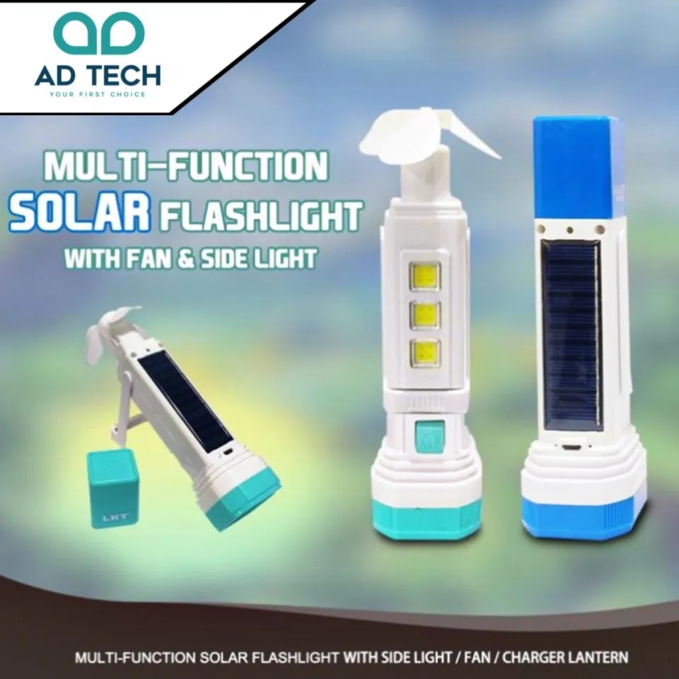 "Stay powered up and cool with the Solar Rechargeable Light with Fan, a versatile and eco-friendly solution for indoor or outdoor use. This innovative device harnesses solar energy to charge its battery, providing a reliable source of light and a refreshing breeze from the built-in fan, perfect for camping, emergencies, or everyday use."